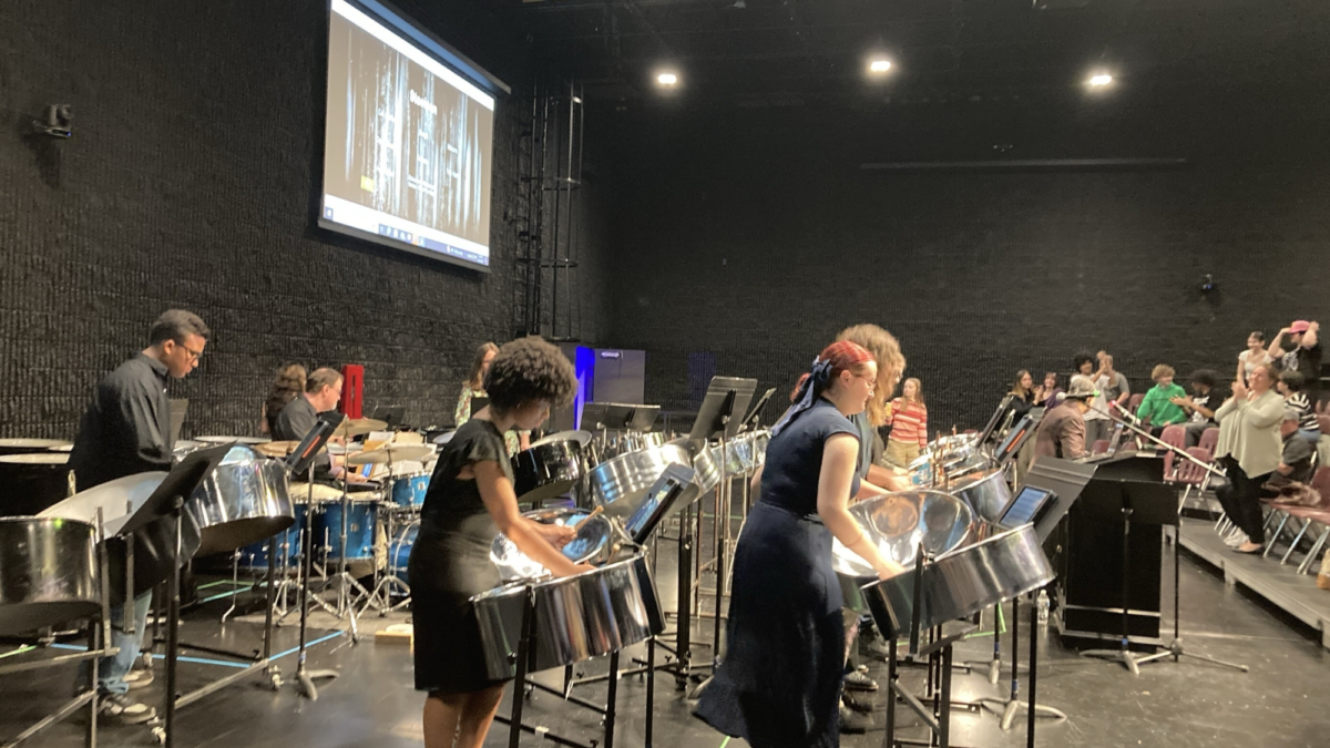 In partnership with the Department of Energy and The Foundation, Toledo School for the Arts invited Liam Teague, Professor of Music and Head of Steelpan studies at Northern Illinois University (NIU), to visit Toledo for a two night presentation on steel drums. The Foundation attended Liam Teague’s lecture and concert in the TSA Black Box Studio on November 5th, with the Glass City Steel Band accompanying.